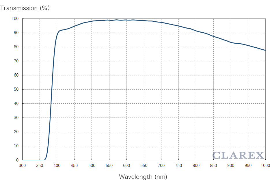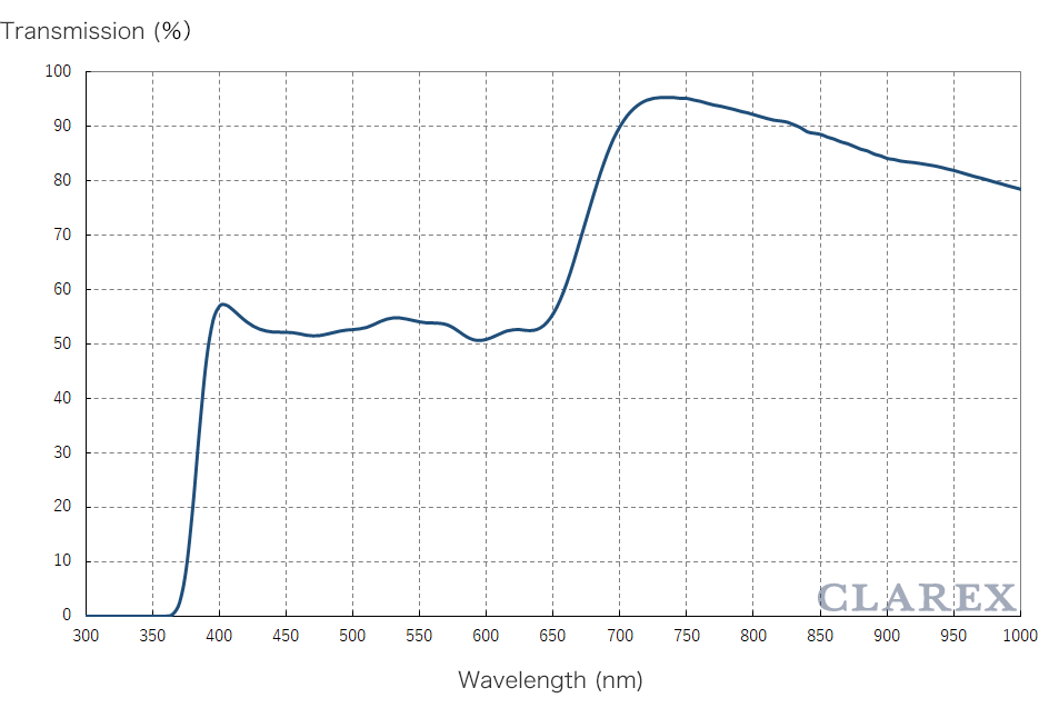 ※ The optical transmission curve in the figure is the measured value of 1.0mm thick sample and is not for guarantee.