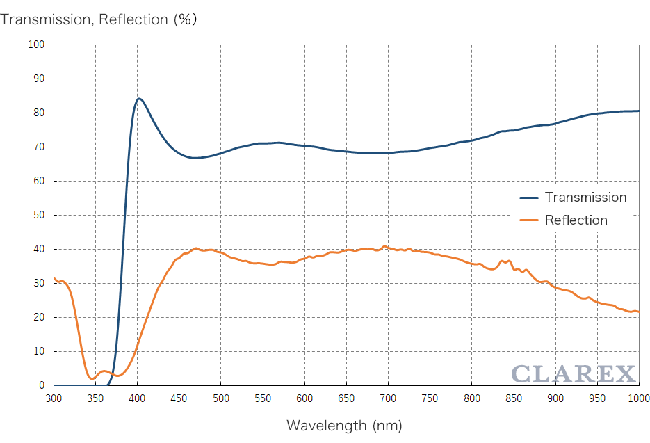 ※ The optical transmission curve in the figure is the measured value of 1.0mm thick sample and is not for guarantee.