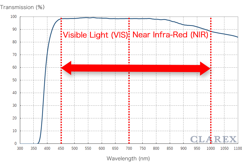 ※ The optical transmission curve in the figure is the measured value of 1.0mm thick sample and is not for guarantee.