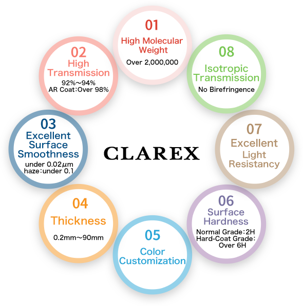 "Cell-Cast sheeting method" and "CLAREX Technology Platform" make it possible to propose variety of optically valued products.