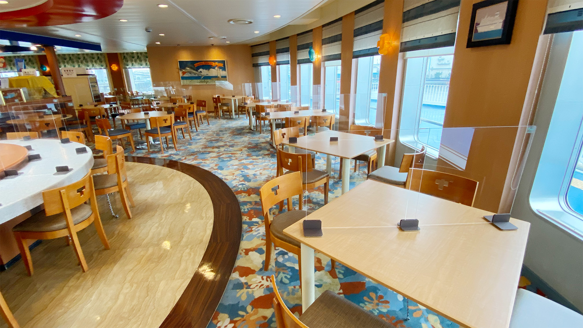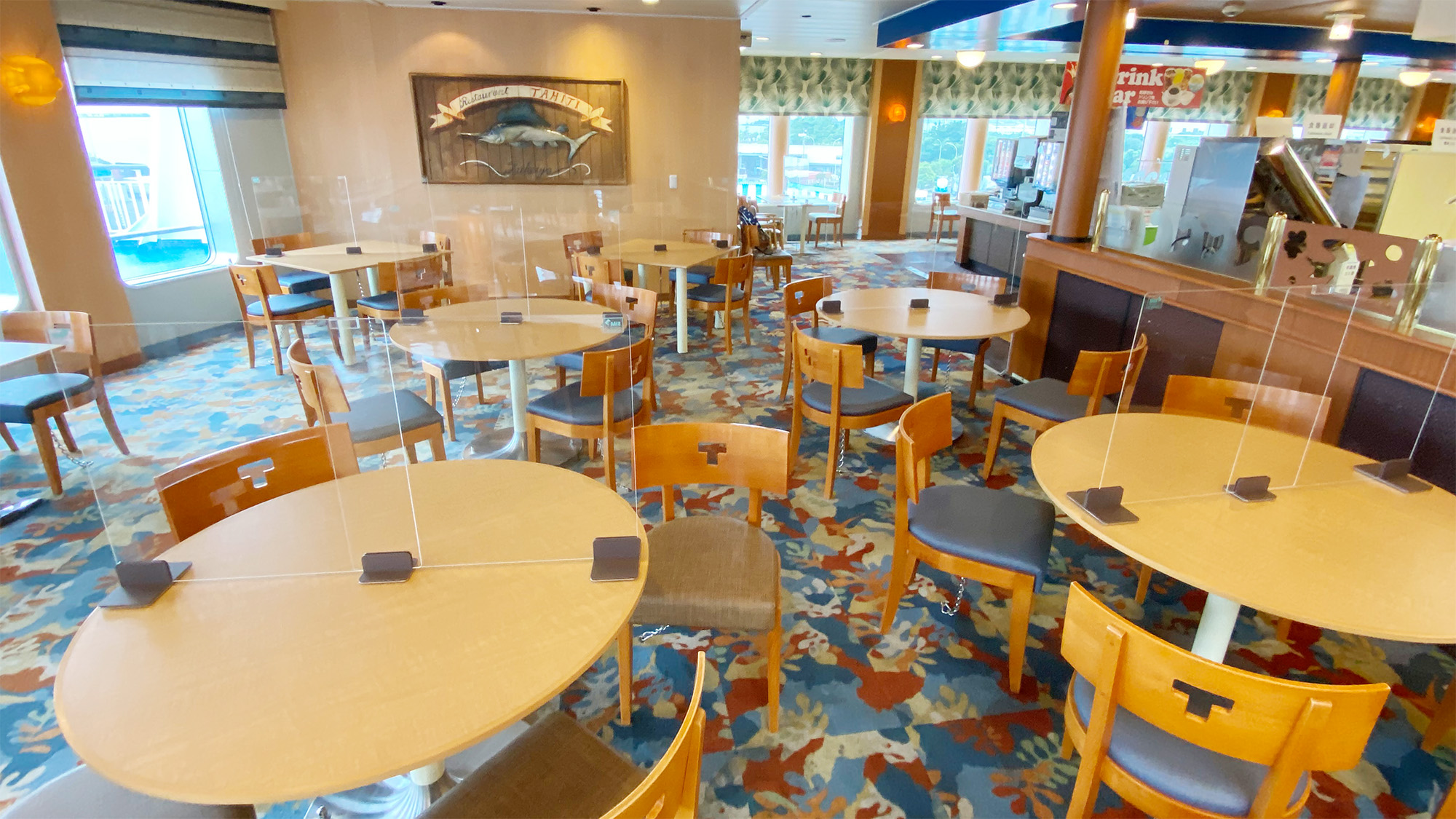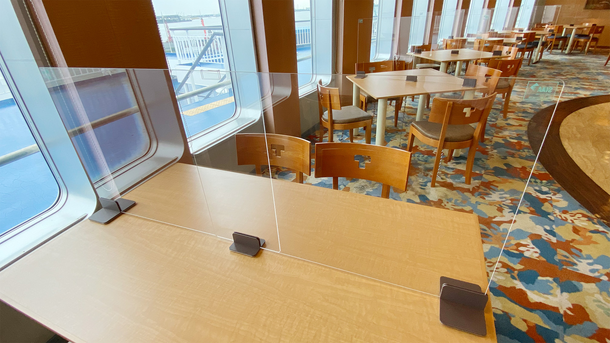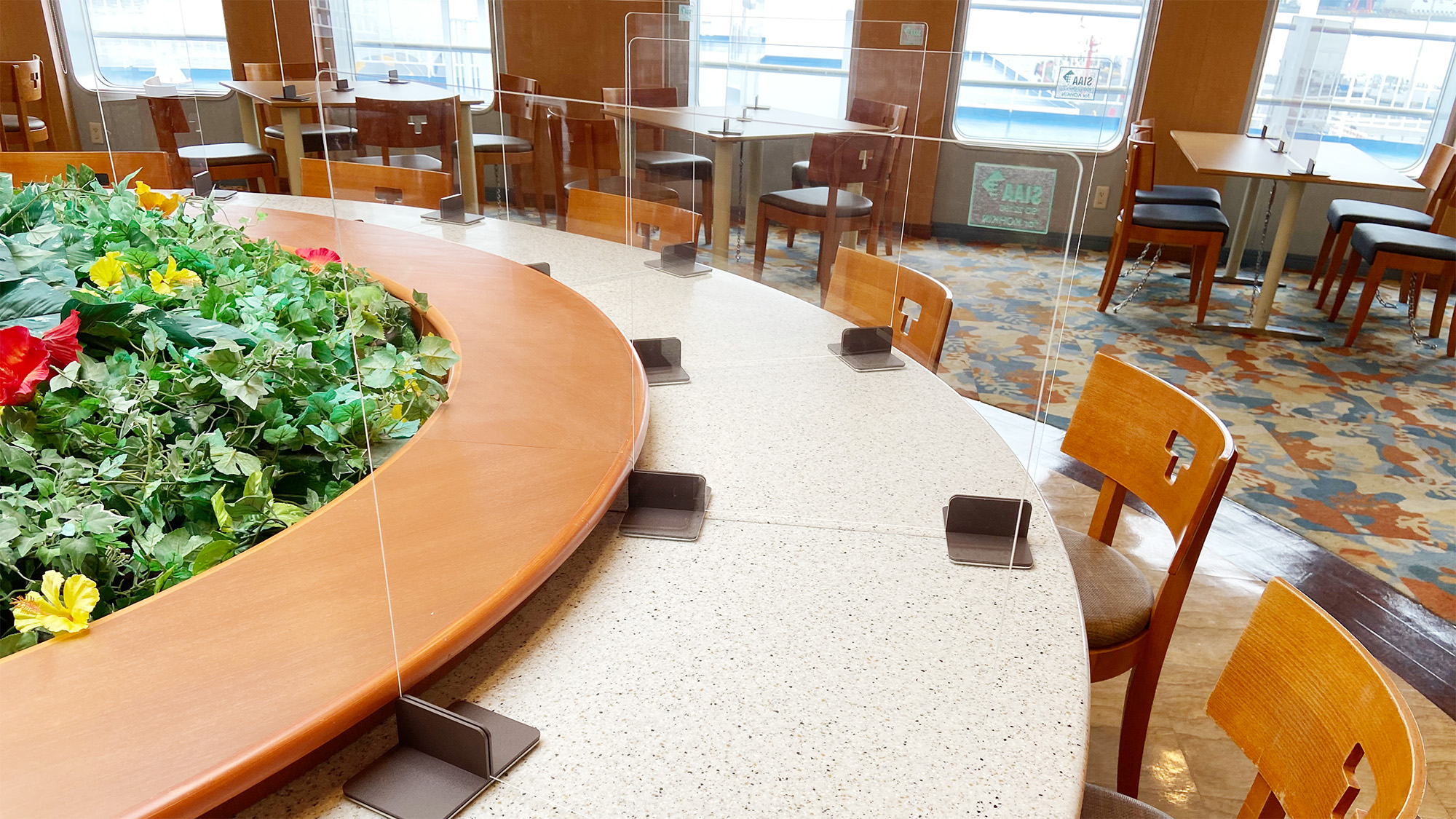 フェリー「きそ」 の船内レストラン『タヒチ』内のテーブル上に、仕切りパネルとして設置していただきました。