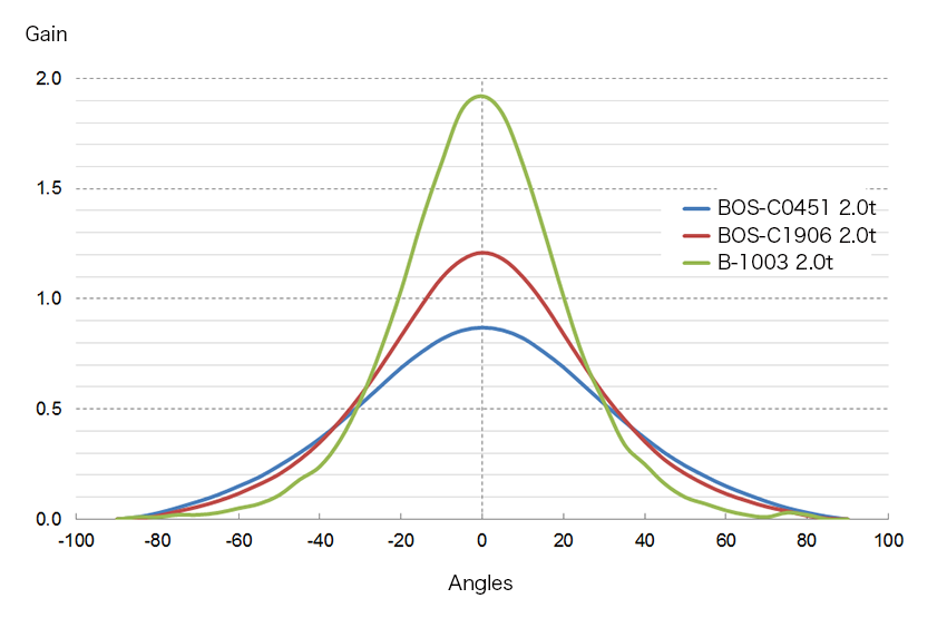 | Lineup | Transmission(%) | Peak Gain | 1/2 Angle |