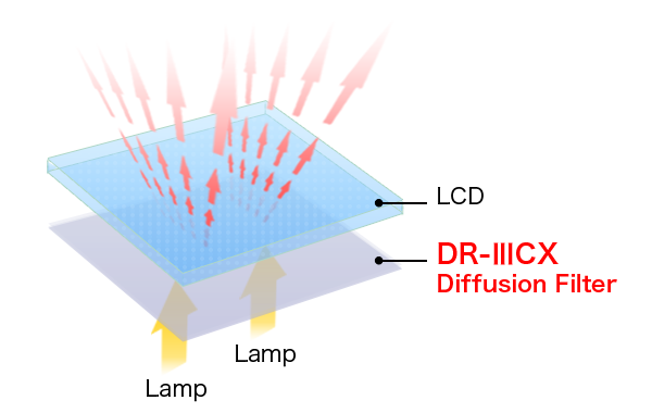 CLAREX DRⅢCX LIGHT DIFFUSION FILTER is an optical light diffusion filter combining light transmission with uniformly controlled diffusion. CLAREX DRⅢCX LIGHT DIFFUSION FILTER has a *color temperature of 6750K and it is adaptable to any backlit display.