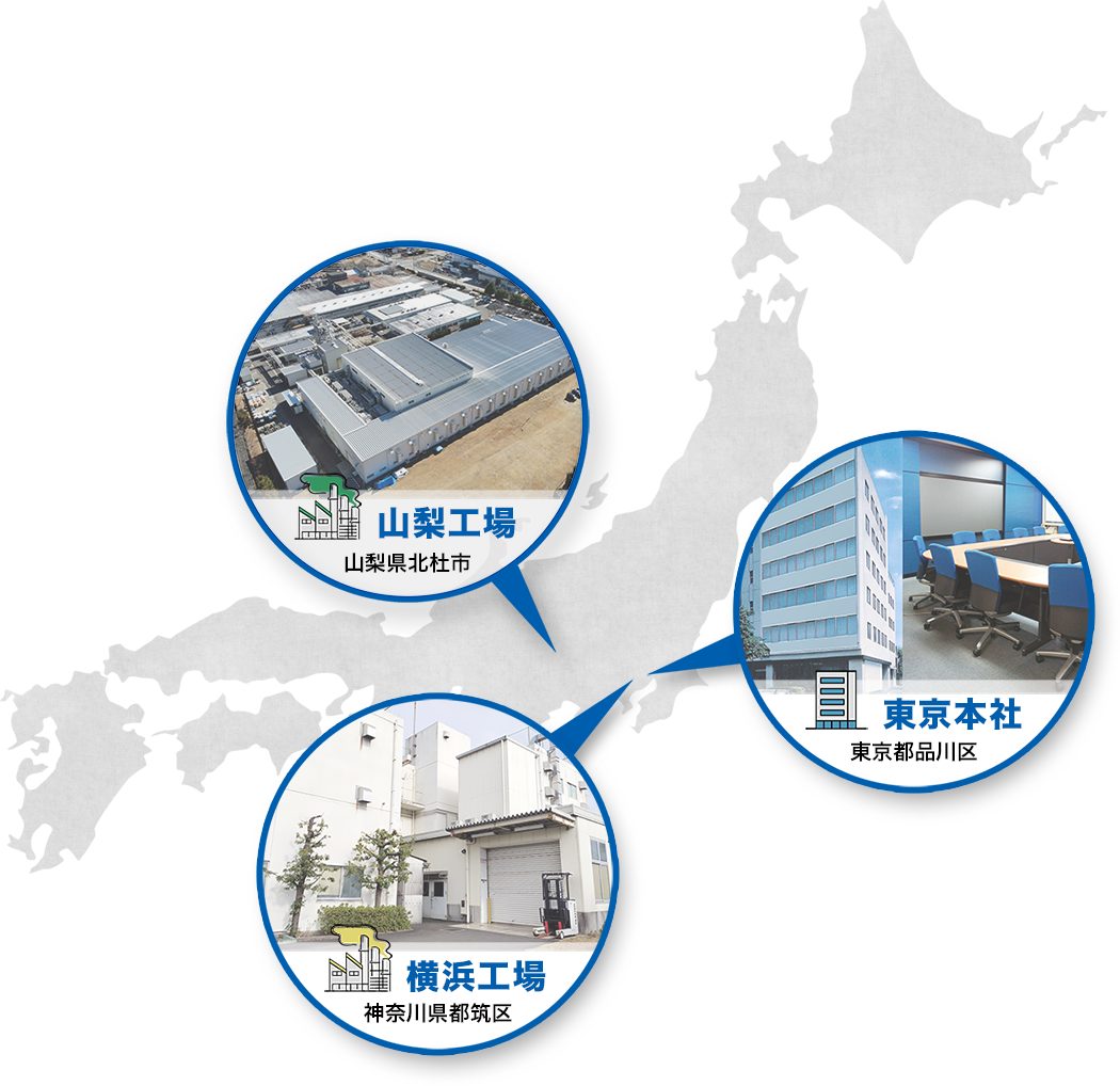 日東樹脂工業の活動拠点ごとの大まかな仕事内容や役割、立地環境などについてご案内します。