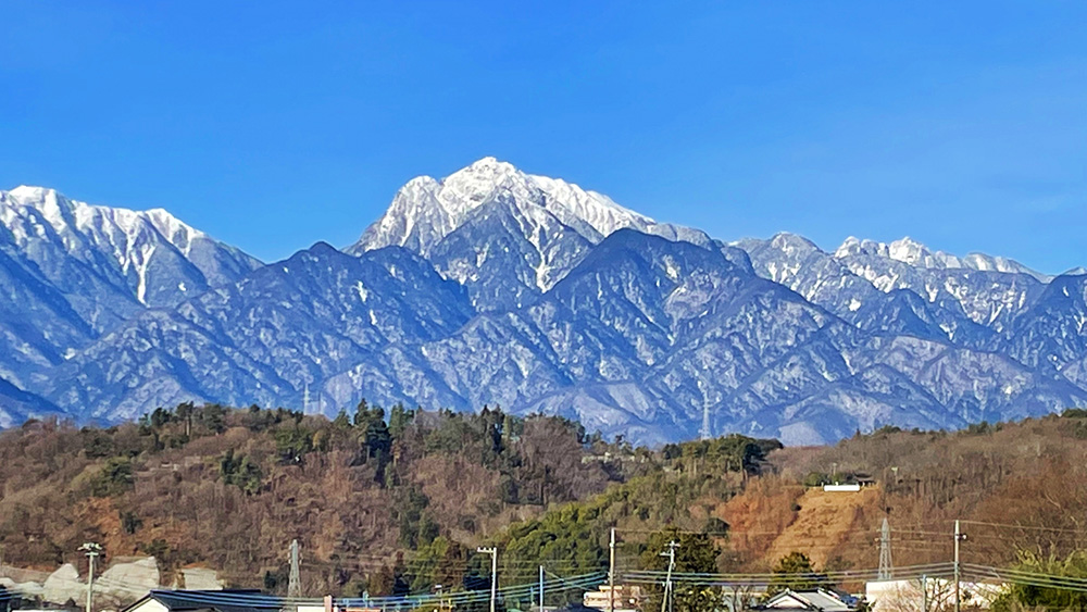 山梨工場は駒ケ岳の麓、山梨県北杜市に立地しています。「日本三大急登」のひとつでもあり、季節を問わず広大な景観を誇る甲斐駒ヶ岳ですが、冬の雪化粧した姿は特に美しく、山梨県は富士山だけではないことを実感できます。