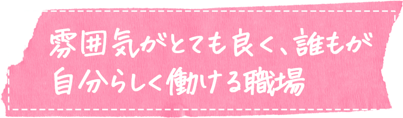 現場の雰囲気がとても良く、メリハリをつけながら和気あいあいと仕事に取り組めるので、日々頑張ろうと思えます!